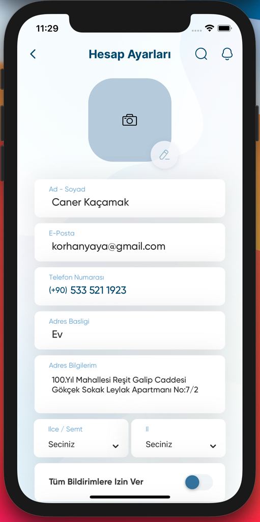 - Profil bilgileri alanı tamamlanmıştır.